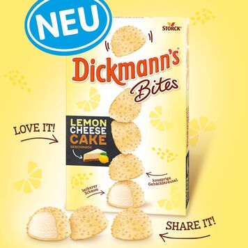 Dickmann’s ist die bekannteste und erfolgreichste Schaumkussmarke Deutschlands*. Sie steht für unwiderstehlich leckeren Genuss. Mit den neuen Dickmann’s Bites in der Geschmacksrichtung Lemon Cheesecake präsentiert die Marke nun ein kleines „Bite“ Format, das perfekt in den heutigen Alltag passt und das Dickmann’s Markenportfolio erweitert.